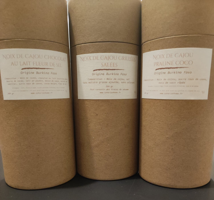 Issues directement d'une coopérative agricole au Burkina Faso, la qualité et les conditions de fabrication de ces noix de cajou sont garanties.
